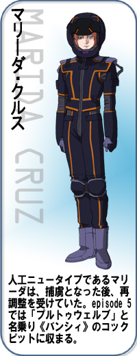 瑪利妲的本名為「普露12號」。為人工生育出的新人類第12號試作品。於第一次新吉翁戰爭的最終決戰中搭乘量產型丘貝雷。 |