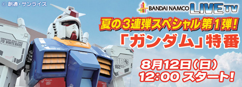 實況發佈BANDAI NAMCO團隊最新娛樂情報的「BANDAI NAMCO LIVE TV」,作為夏日SPECIAL 3連彈的第1彈、鋼彈特別節目「夏日的鋼彈祭典」,於8月12日(日)12:00現場直播。