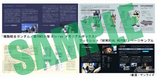 44 頁的小冊子,刊載了決定稿前的初期粗稿與設計者們的留言,內容包含了當時機械與角色決定稿的設計經過,以及跟08小隊的製作群和聲優等所敘述的細節與貴重資料,內容豐富且可看性十足。