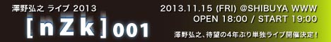 「[nZk] 001」是以近年擔綱作品樂曲為中心,並邀請了特別來賓擔任主唱的樂團演奏會,預定演奏『鋼彈 UC』的「A LETTER」、「EGO」等曲目。
