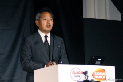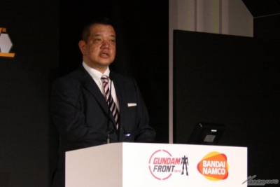 本發表會聚集了眾多對「全新鋼彈」有著高度期待的記者與相關人士,首先上台的是萬代股份有限公司董事長兼鋼彈執行長的上野和典先生。