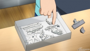 另一方面,在夜晚街道遊盪的嶺司,前往某處。那裡是有著長期鋼彈模型製作年資的男人們,夜夜進行戰鬥的店家。為了修練身手,挑戰眾人的嶺司將對手打的落花流水。