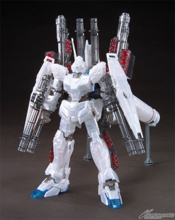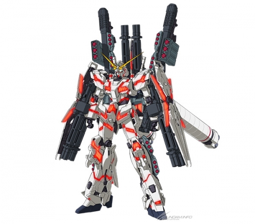 全裝甲獨角獸鋼彈發動NT-D的狀態。全身裝備的大量武器即便在毀滅模式下也不會妨礙到動作,能夠完全發揮武器的攻擊性能。