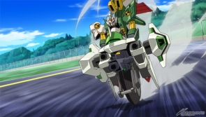 誠和嶺司的創鬥攻擊鋼彈使用解放系統,展現驚人的起跑衝刺。比賽看似即將在誠他們的一路領先下結束,沒想到PPSE真下會長的秘書蓓卡,卻在這個特製賽道裡設下了一個大陷阱。