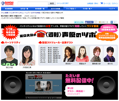 動畫・特攝影片播放服務「BANDAI CHANNEL」,今天1月24日(五)起開始提供廣播節目「阪口大助的〈週刊〉聲優秘密」。