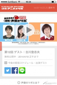 APP除了能閱覽「〈月刊〉動畫的秘密」的內容,還能收聽每星期五更新的廣播節目「阪口大助的〈週刊〉聲優的秘密」。
