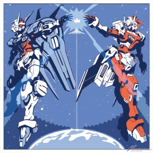 「鋼彈 RECONGUISTA IN G Edition」的封面插圖,是由負責本作機械設計的形部一平親筆繪製,以「G-自我」和「G-奧秘」這兩台機體來做設計。初回樣式採用插圖三面式外盒,一定要快點來買喔!