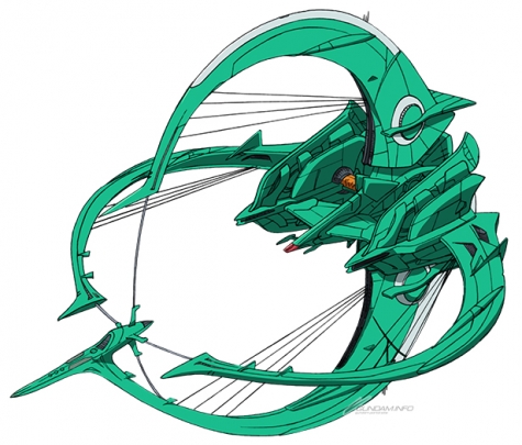 德瑞特軍的新型MS。由洛克帕駕駛。頭上圓環狀光束產生器放出像緞帶一樣的光束披風,能夠成為可攻可守的兵器。 |