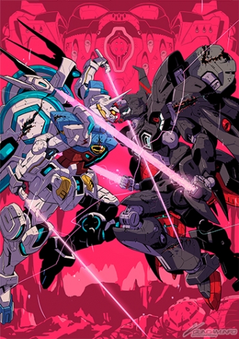 這張充滿魄力的最終視覺圖由負責本作機械設計的形部一平繪製,G-自我裝備「全備背包」與假面男新機體「克巴迦利」展開激烈戰鬥。