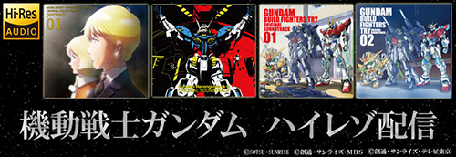 此次推出的高音質音源為,『機動戰士鋼彈 THE ORIGIN』原聲帶「portrait 01」、『鋼彈 RECONGUISTA IN G』原聲帶、『鋼彈創鬥者TRY』 原聲帶01和02合計4張。