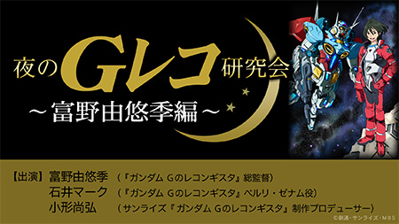影像中有『鋼彈 RECONGUISTA IN G』的小形尚弘製作人、終於作為來賓登場的富野由悠季總監督,以及緊急參加的貝利・傑納姆聲優,石井マーク等人,展開與「G-RECO」相關的熱烈對談。