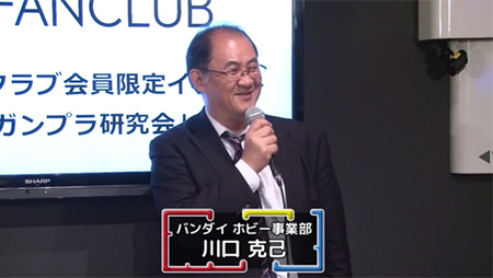 最速報導介紹中,由SUNRISE的谷口廣次朗和BANDAI安永亮彦介紹即將在11月28日(六)發售的「1/100 獵魔鋼彈」。解說了忠實於設定再現的内部股價,和充實的可動機構等套件的魅力之外,也介紹了開發時堅持的重點。