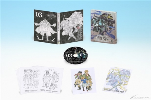 『機動戰士鋼彈 鐵血孤兒 貳』的Blu-ray・DVD,第1卷收錄2話,第2卷之後將每卷收錄3話,預定每月推出2卷共9卷。價格方面,Blu-ray第1卷為6,800日圓(未稅)、DVD第1卷為4,800日圓(未稅)、第2卷之後Blu-ray為7,800日圓(未稅)、DVD為5,800日圓(未稅)。DVD租借服務也預定同時開始。