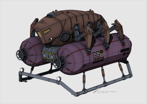 吉翁公國軍所展開的獨立戰爭中最初的大規模作戰,就是朝著地球聯邦軍總司令部所在的賈布羅投下宇宙殖民衛星的「不列顛作戰」。為了執行此作戰,必須獲得一座幾近完好的殖民衛星。吉翁公國軍把目標定在親地球聯邦派的SIDE 2哈帝的首都番地──伊菲修島,為了利用致命性的化學武器「GG毒氣」置全居民於死地而展開行動。此時所使用的就是能搬運和注入GG毒氣的特殊宇宙艇。本宇宙艇由進行操縱及控管毒氣注入作業的上部,以及下部的儲藏槽所構成。上部有著讓人聯想到昆蟲的特殊形狀,能夠和儲藏槽部分分離移動。就根本來說,本宇宙艇並不是開發來專門注入GG毒氣的機體,而是用來搬運氧氣等,於建設殖民衛星時所需的氣、液體,用來注入於施工現場的機體,本次則將其轉作軍事用途。因此,搭乘人員為了避免預料外的毒氣洩漏意外,所以都穿著了特殊的太空衣。