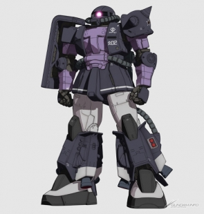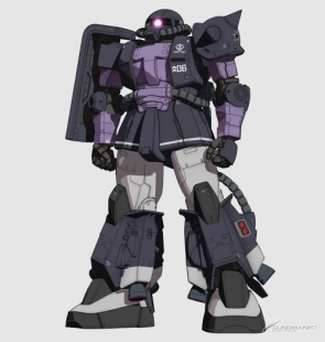 吉翁公國軍的主力──MS-06 薩克II,以初期生産型的C型,還有之後登場的F型為首,為了因應在各種戰況都能夠運用的「汎用性」要求下進行開發。為了迎接獨立戰爭,開始整備泛用性高的C型量產體制後,吉翁公國軍就著手開發往特定戰鬥狀況特化、對應局地戰的MS-06 薩克II。其中,最早完成的就是MS-06R-1A 高機動型薩克II。本機體排除了泛用性,為了特化宇宙空間的戰鬥機能,施加了追求更高機動性的改良。背部大型化的背囊(背包),也增設了能裝填更多大量推進燃料的外接燃料槽。腳部各設置了3具合計共6具加速用的大型推進器,意圖增強機動力。本機體在獨立戰爭初期的大規模艦隊戰及魯姆會戰中,由過去以測試駕駛員身分參與MS開發的蓋亞、奧爾迪加、馬修等黑色三連星一行人所駕駛。他們擅長組成對艦戰鬥用的隊型來使出三位一體的攻擊,因應功能定位所採用的不同武裝也成了他們的特徵。領導隊伍的蓋亞在兩肩裝上盾牌,以增加火箭炮的攜帶彈數。善於射擊的馬修,其座機則裝備了能夠行進中、遠距離射撃的MS用對艦步槍 ASR-78。然後,擅長近接格鬥戰的奧爾迪加,其機體則作為蓋亞機和馬修機攻擊的收尾,以巨型電熱斧直接攻擊來給予最後一擊,藉由此合作方式,他們在魯姆會戰中獲得了極高的戰果。